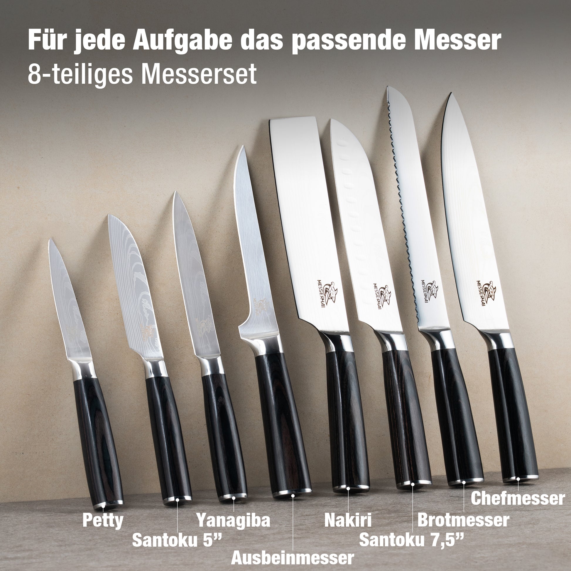 MesserHai-Messer aus rostfreiem Stahl oder Damast garantieren Langlebigkeit und leichte Pflege. Achte darauf, dass die Messer gut in der Hand liegen und nicht zu schwer sind. Für Anfänger kann es auch sinnvoll sein, ein Messerset zu wählen, das die wichtigsten Messertypen beinhaltet. MesserHai hat hierfür optimierte Messersets.