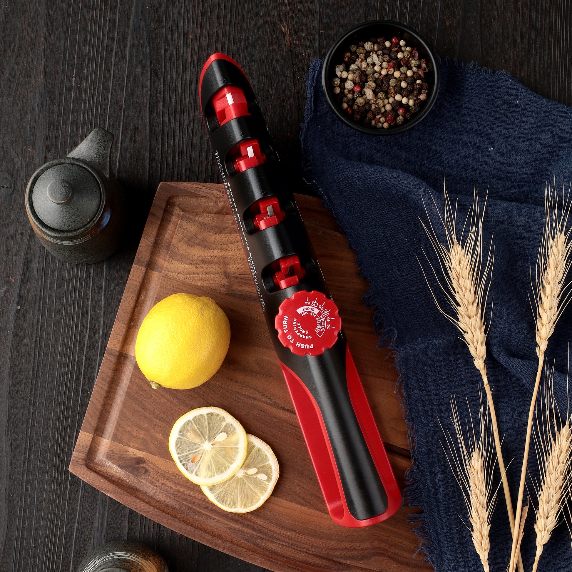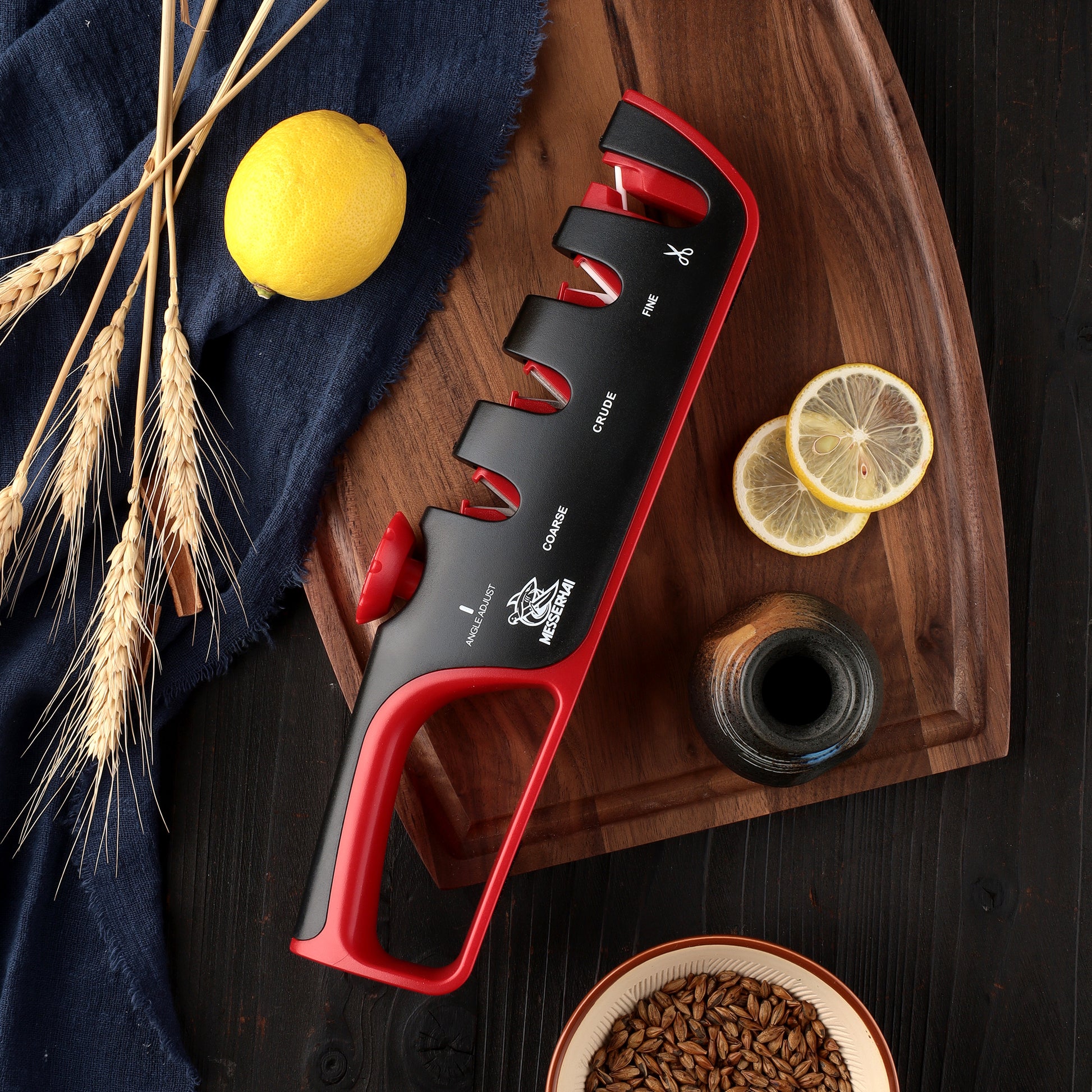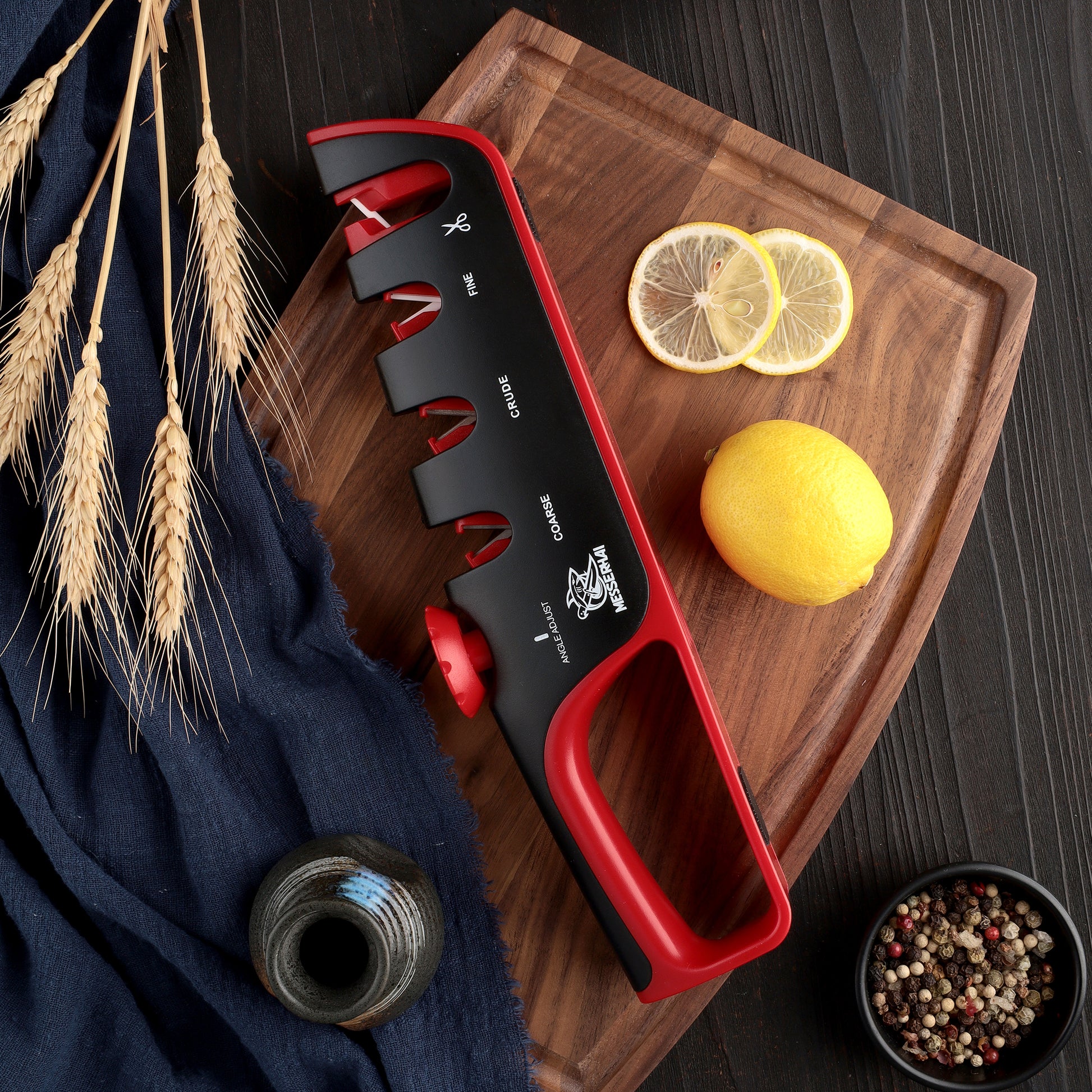 Der MesserHai Toishi Kochmesserschärfer ist das ultimative Werkzeug für jede Küche, das Professionalität und Benutzerfreundlichkeit vereint. Mit seinem robusten Design in markantem Rot und Schwarz ist dieser Kochmesserschärfer nicht nur ein Blickfang in deiner Küche, sondern auch eine zuverlässige Lösung für stumpfe Klingen. Versprochen!