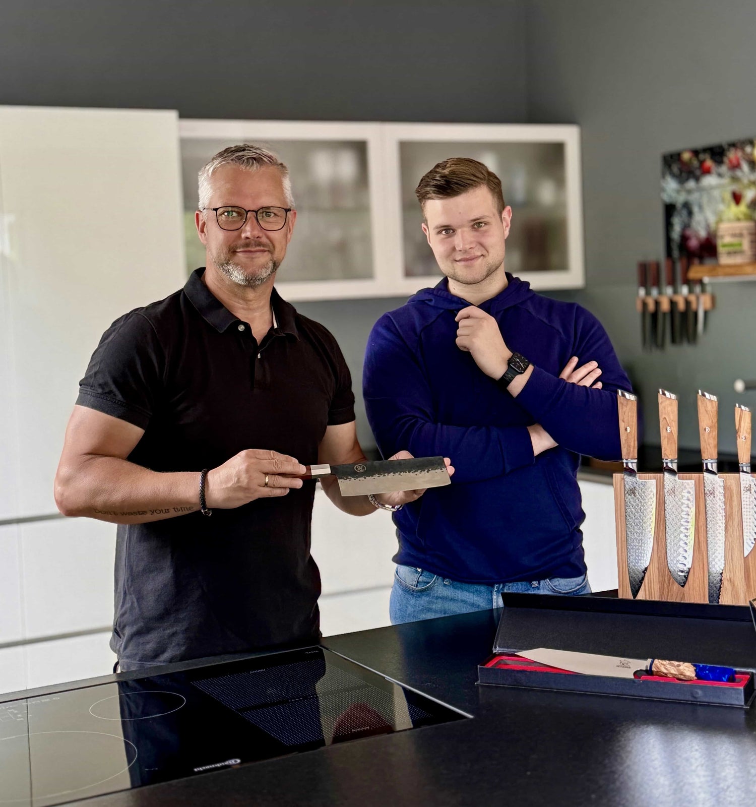 Als Vater und Sohn teilen wir eine tiefe Leidenschaft für das Kochen und die Welt der Messer. Aus unserer langjährigen Erfahrung in der Küche wissen wir, wie entscheidend das richtige Werkzeug ist. Doch trotz intensiver Suche fanden wir nie das perfekte Messer, das unseren Ansprüchen gerecht wurde. Aus diesem Grund beschlossen wir, unser gemeinsames Projekt, Messerhai, ins Leben zu rufen.
